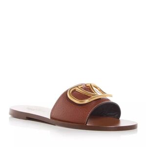 Valentino Garavani Women Brown Slides with V Gold Logo Size 8.5