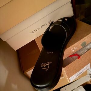 Sleek black Chambelimule flats by Christian Louboutin. Crafted from calf leather.