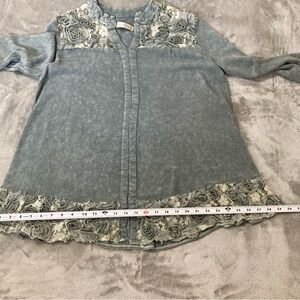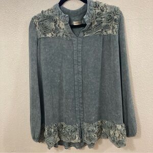 Simply Couture Women’s Blouse Gray Embellished Long Sleeve Size S Bohemian