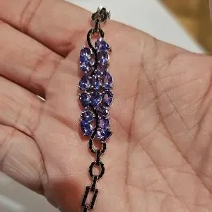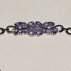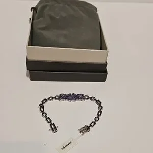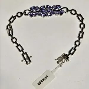 This elegant bracelet features stunning purple stones set in a sleek silver design. Perfect for adding a touch of sophistication to any outfit.