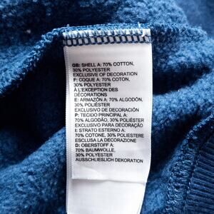 The North Face cropped hoodie in a deep cobalt blue with retro graphic print and bold contrast logo. Women’s size small. This pullover is fleece-backed for warmth and softness, built with a drawstring hood and ribbed trim at the cuffs and hem. The front logo keeps it clean, but the back graphic brings the energy—orange and purple, high contrast, and fully retro. It’s outdoor streetwear with a point of view.