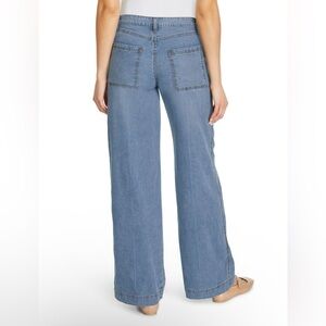 Experience effortless style with these blue flare jeans from Nine West, featuring a high-rise waist and a flowing wide-leg cut for a modern, comfortable fit.