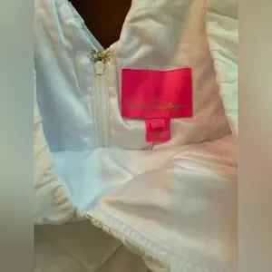 New with tags! This elegant Lilly Pulitzer Ritamarie Mini Dress in crisp white is perfect for bridal showers, bachelorette weekends, or summer parties.