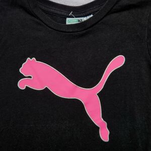 Puma Girls T-shirt Black Pink Crewneck Short Sleeve Sport-Casual Size XS Kids