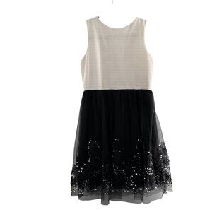 Knitworks Girls White & Black Sleeveless Dress 16 1/2 Necklace Tulle Holiday
