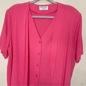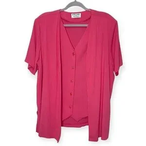 ALFRED DUNNER VINTAGE Fuchsia Pink Short-Sleeve Blazer Blouse, Size 18