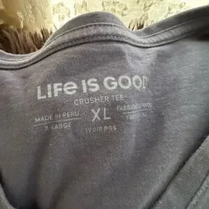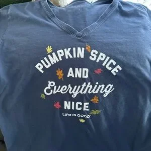 Life Is Good Blue Short Sleeve Tee Pumpkin Spice Graphic