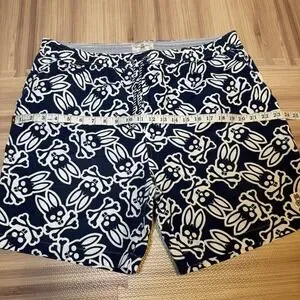 Psycho Bunny Blue Swim Trunk Shorts All-Over-Print Logo Size XL