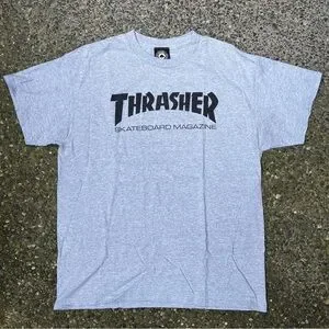Grey Thrasher Skateboard Magazine T-Shirt. super cozy and comfortable!! size large. let me know if you’d like to bundle with the other thrasher tee and i’ll give you a discount!