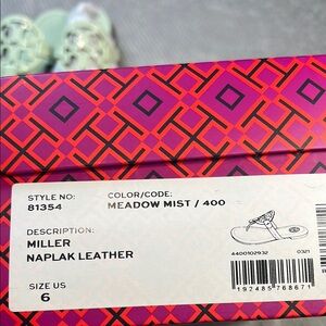Tory Burch miller naplak leather clr meadow mist/400. size6