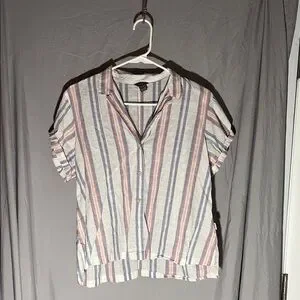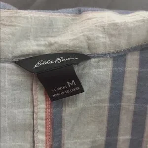 Eddie Bauer Pink and Blue Puff Sleeve Button Down Shirt