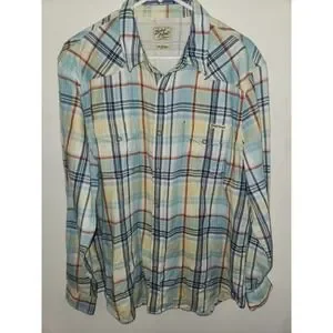 Lucky Brand Western Button Up Shirt Men's XL Pearl Snaps Long Sleeve Plaid