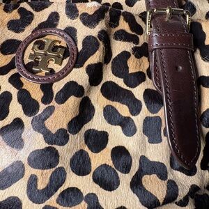 Tory Burch City Zip Leopard Jaguar Print Leather Cowhide Tote X-Large