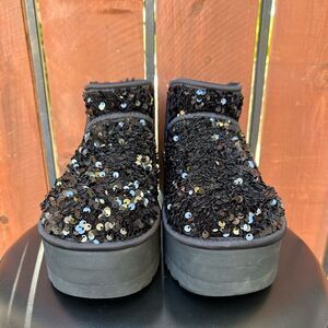 Ugg Ultra Mini Chunky Sequin platform boots black sequins size 8US ✨