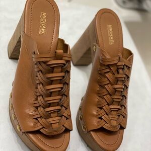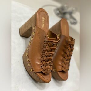 Michael KORS Wesley block heels leather mules excellent condition 5 inch heels