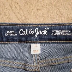 Experience the perfect blend of comfort and fashion with these Cat & Jack blue skinny jeans. Designed for a sleek fit, they offer a versatile medium blue tone ideal for everyday wear. The subtle fading adds a touch of casual elegance to your little fashionista's wardrobe. The pants button and zip up. The jeans have 4 pockets and a adjustable waist.