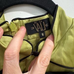 De La Vali green satin Vinyl mini dress