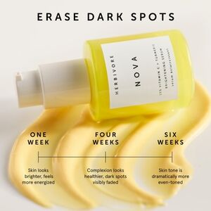 Illuminate your skin with 's Nova Brightening Serum. Infused with Vitamin C and turmeric, this yellow serum revitalizes and brightens your complexion.