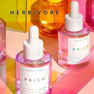 Herbivore Prism Exfoliating Serum with a rainbow hue. Perfect for skincare enthusiasts.
