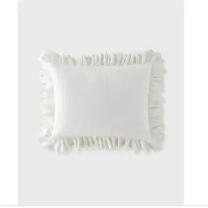 Crafted from a linen-cotton blend, the pillow cover offers a soft yet durable texture, while the plush insert—filled with 95% feather and 5% down—provides luxurious comfort and structure. Delicate crocheted scallop edging adds an artisan touch that enhances its sophisticated appeal.