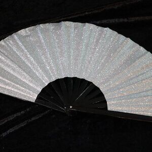 Shine bright and stay cool with this stunning oversized folding fan, designed in icy silver glitter that catches every light and turns heads.