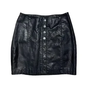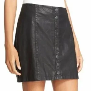 Free People Black Vegan Faux Leather "Oh Snap" Leather Mini Skirt - Size 0