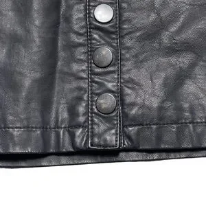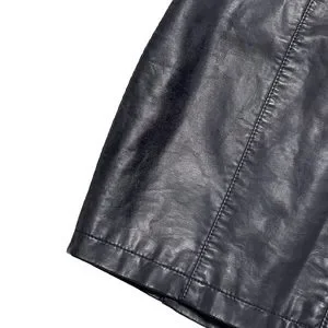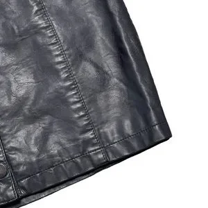 Free People oft black vegan leather mini skirt with front snaps for an edgy, stylish look. Comfortable fit with a sleek, flattering silhouette. Dress it up or down. Great for day or night.