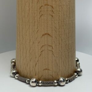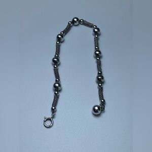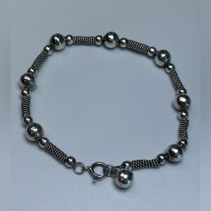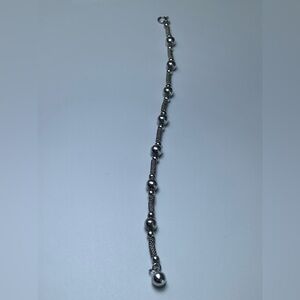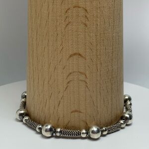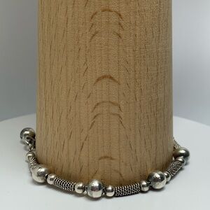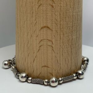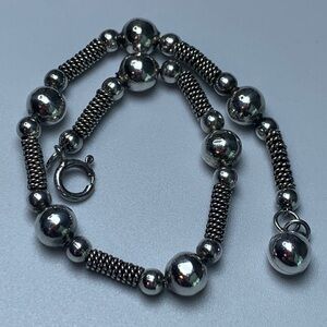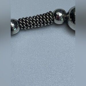 🛜 Vintage Sterling Silver Bead & Wire Tube Bracelet w/Bead Accent Charm is ~7-3/4” long x 1/4” wide