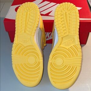 Stylish Nike athletic shoes. Bright yellow and soft gray design. Perfect for sports and casual wear.