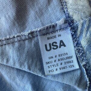 Women's Size Small - Pullover style short sleeve V-neck A-line dress - shade of purple with an abstract white & gray distressed abstract flower print pattern. Short / Knee length. Material has a stretch. 100% Cotton. Made in the USA. Boho, bohemian, summer, vacation, travel, beach