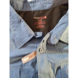Swiss Tech Shirt Men 3XL Blue Black Checks Button Up Long Sleeve Pockets Stretch
