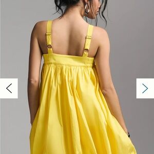 This vibrant yellow Bloni mini dress features a playful spaghetti strap neckline, perfect for a night out. Its sleeveless design and airy fabric create a chic and modern look, ideal for cocktail occasions. The dress's mini length adds a touch of elegance and fun to your evening ensemble. Bubble hem whimsy; taffeta playfulness. Bloni for Anthropologie. Sold out everywhere! New without tags.
