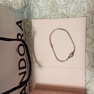 EUC Pandora Sterling Silver Bracelet W/White Bag and Pink Box Set