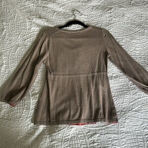 Boden Scoop Neck Gray/Tan Empire Waist Cotton Blend Top Size 8