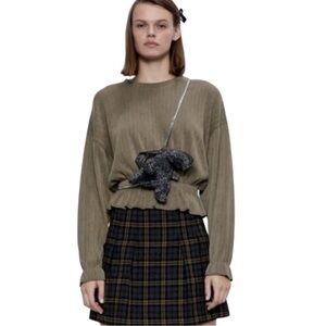 Zara Peplum Hem Ribbed Sweater - Olive Green