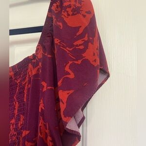 Terra & Sky Purple and Orange Flutter Sleeve Dress 2X(20W-22W)
