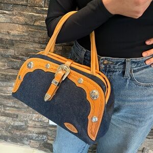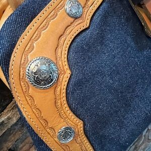 Circle Y of Yoakman - Denim and Tan Leather Handmade Bag