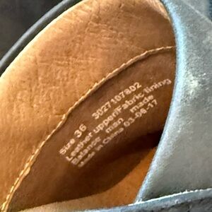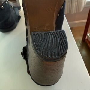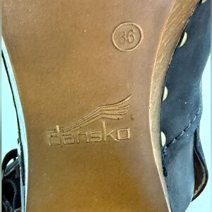 These stylish Dansko clogs, (size 36 which translate to a 5.5 to 6 in USA sizing) are practically brand new, only worn once! There is no wear and tear. They are in excellent condition with no imprint on the footbed. They have a 3” heel for added height with a 1” platform for added comfort! The wooden heel feels so sturdy and the decorative studs add a stylish element which really stand out and make a statement! Step out in style with these chic black suede clogs. These shoes are perfect for any occasion.