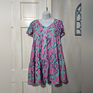 This charming sundress by Umgee showcases a delightful pink hue, ideal for casual outings. It features a flattering V-neckline and short sleeves, offering a breezy and relaxed fit. The dress's midi length and light fabric make it perfect for a comfortable yet stylish look.