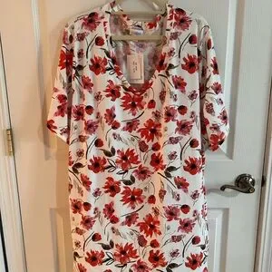 LuLaRoe “Iris” Floral Short Sleeve Tee - Red and White
