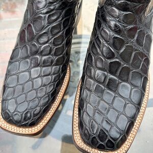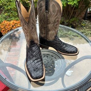 Lucchese alligator print Black and Brown Cowboy Boots with Decorative Stitching