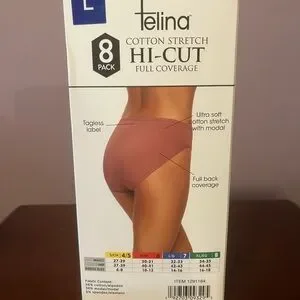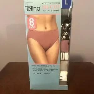 NEW LARGE Felina Women's Cotton Stretch Hi-Cut Panties - 8 Pack