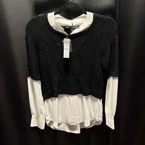 White House Black Market Monochrome Knit Blouse