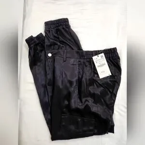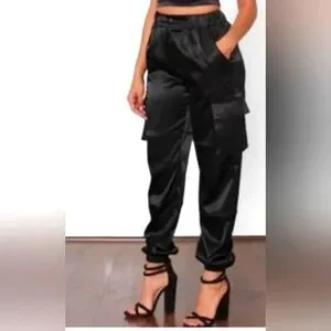 # satin joggers # satin cargo pants # date night outfit # sexy black pants # black pants