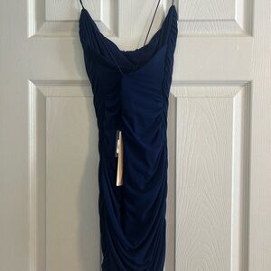 New with tags Oh Polly Navy Blue Ruched Mini Dress