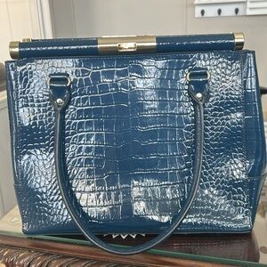 Kate Spade Navy Croc-Embossed Shoulder Bag and Dust BagNavy Blue Preowned