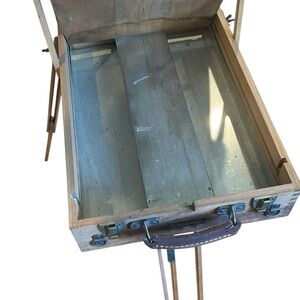 Sturdy wooden artist easel. Perfect for painting and drawing. Great for displaying artwork or actual use! In good condition for its age, obvious signs of wear on hardware and wood due to natural aging.