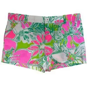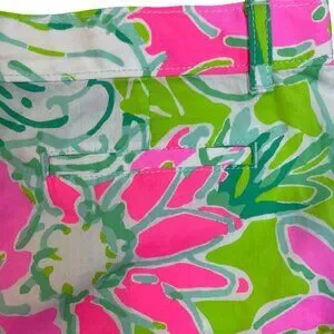 Lilly Pulitzer Girls Floral Cotton Shorts Pink Green Tropical Print Size 14
