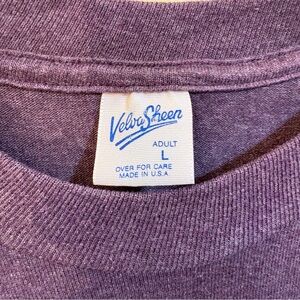 Vintage Mickey Mouse purple tshirt in size large. Some cracking of the image, wearing and color distortion due to age.
