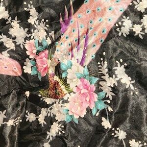 Costume kimono jacket geisha black with peacocks bow barrette belt Halloween 5XL
